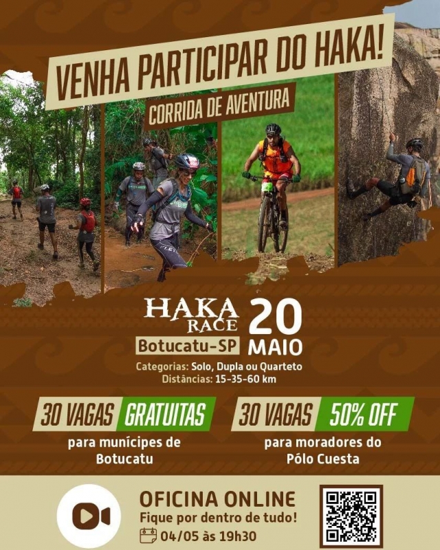 No dia 20 de maio acontece na vizinha Botucatu o Haka Race, uma corrida de aventura com categorias solo, dupla ou quarteto!